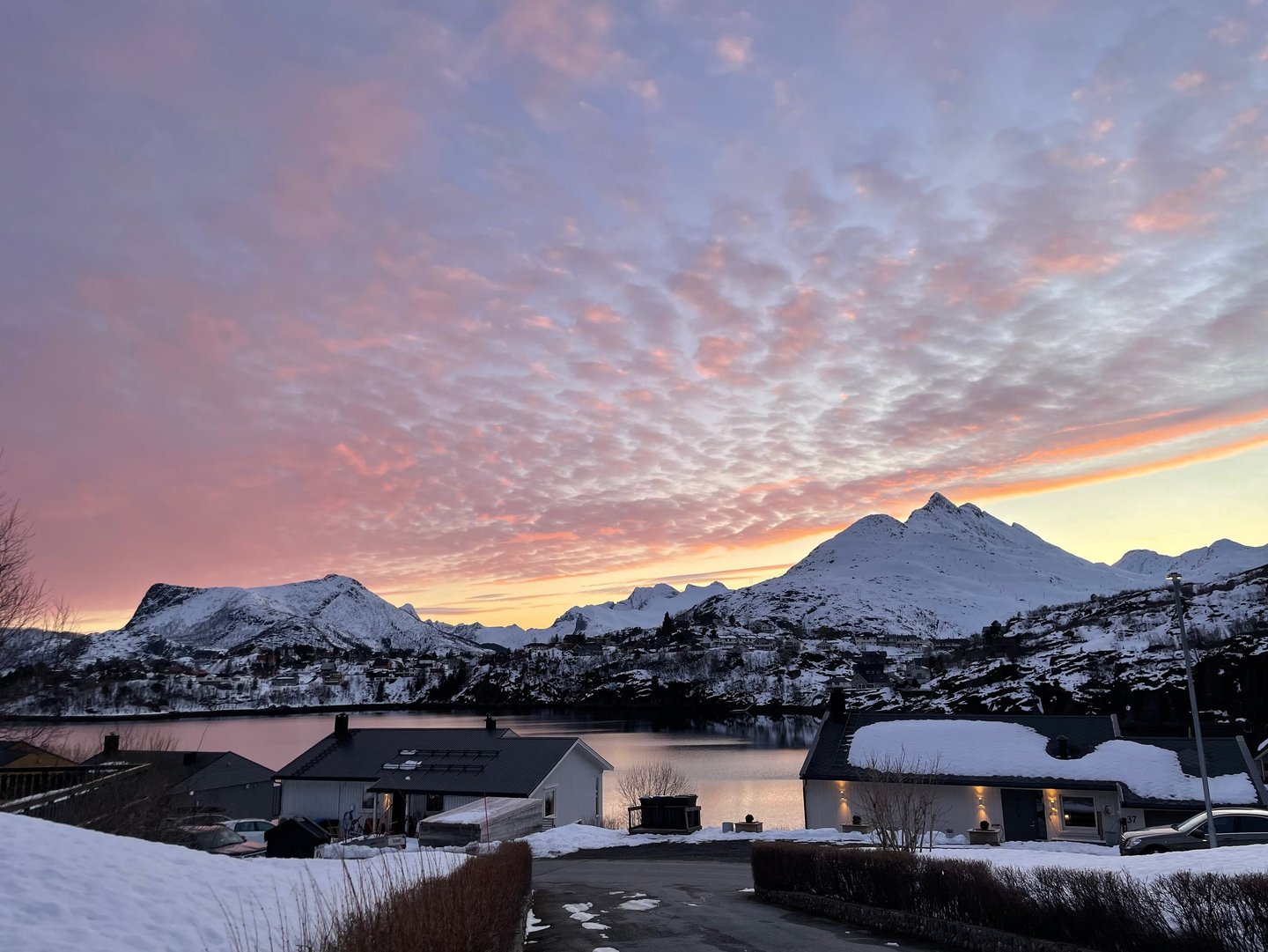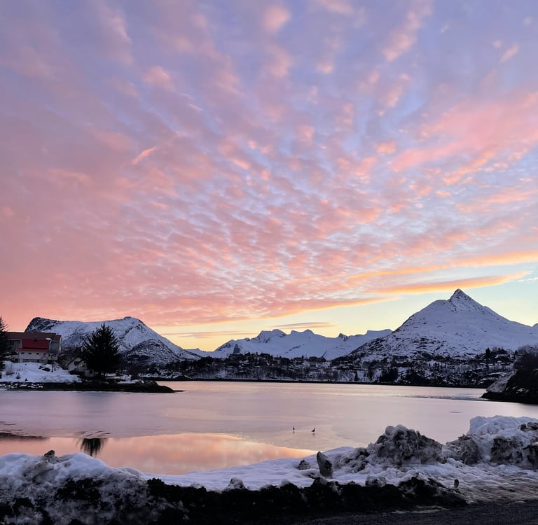 Ma la vera magia di Svolvær però per me è arrivata al tramonto, dove i colori del cielo si riflettevano sulle acque ghiacciate del mare, un sogno.